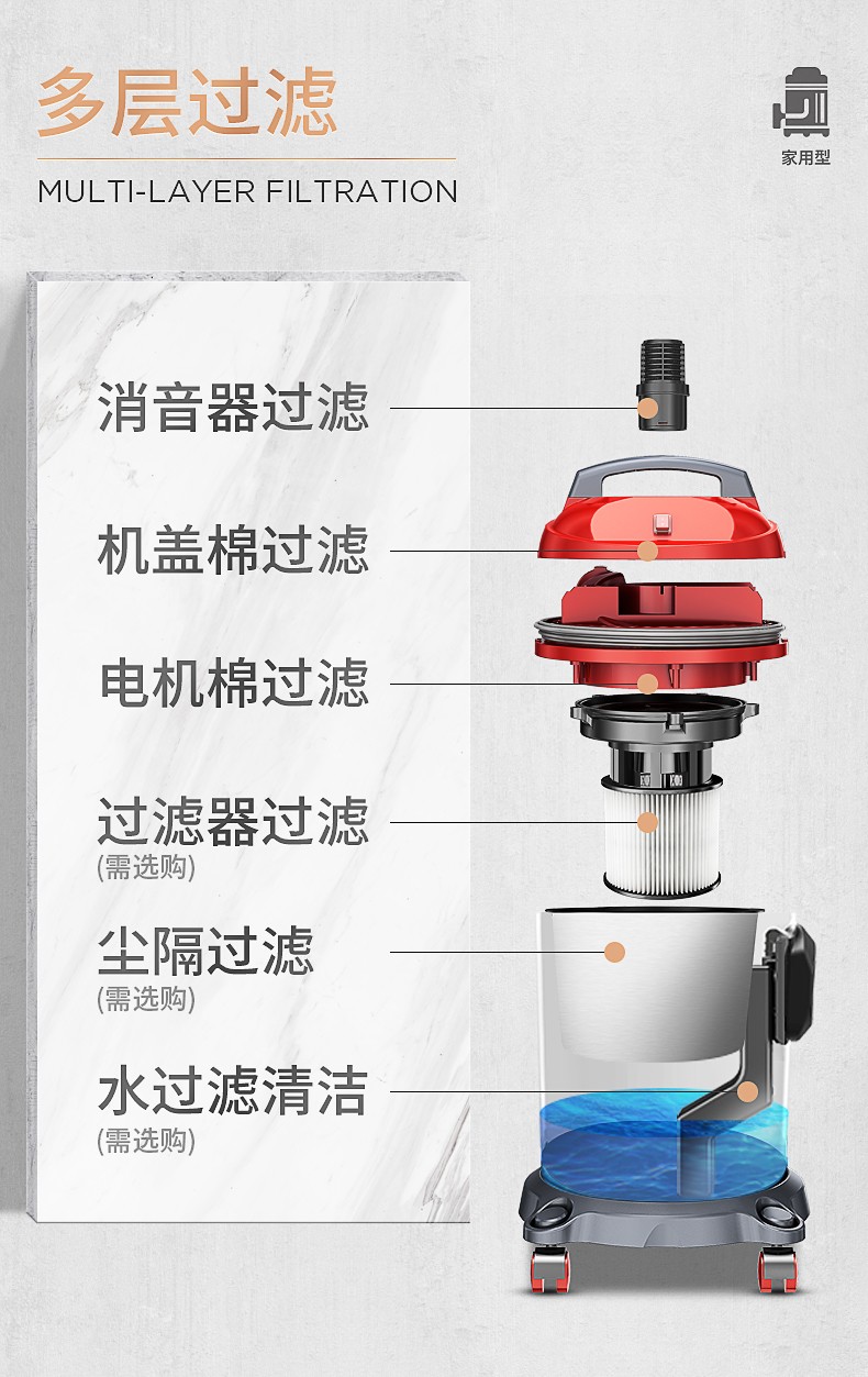 ジェーノ掃除機家庭用小型大出力乾湿両用桶式掃除機カーーペレット内詰め美縫洗車水濾過過15 L(多倉出荷急速達)