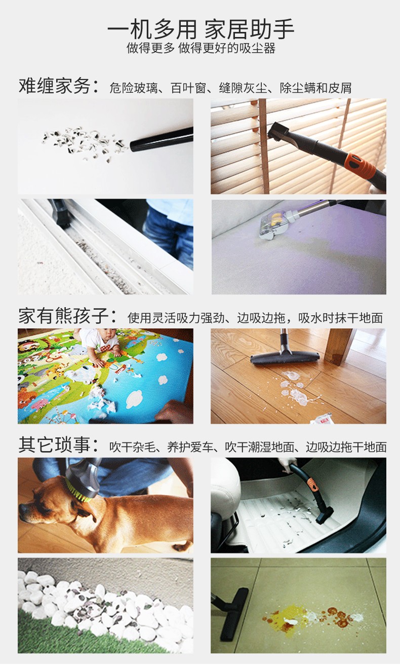 吸引力がとても大きくて、各種は吸い込んで、フィルターはさらにきれいに洗って、スーパー便利で、パイプと線はすべてとても長いです。短い声でも大丈夫です。