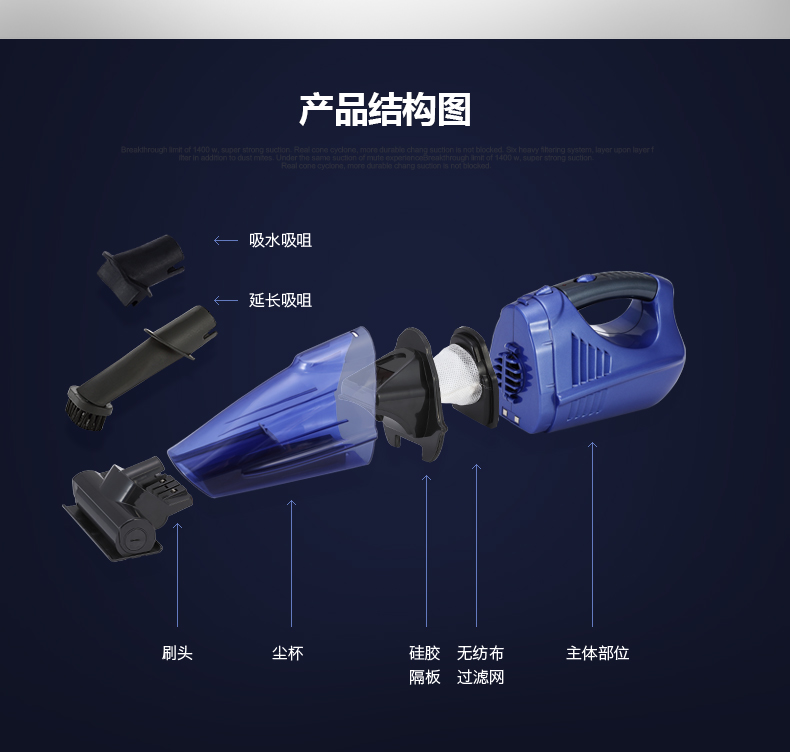 SUPOR掃除機家庭用車用無線携帯充電ダニ除去器吸水乾燥両用XCL 05 B 08 A-65青
