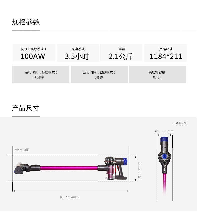 dysonの森V 8 Absoute/V 10/V 6家庭用無線掃除機を持つ大規模パワ・スペクター