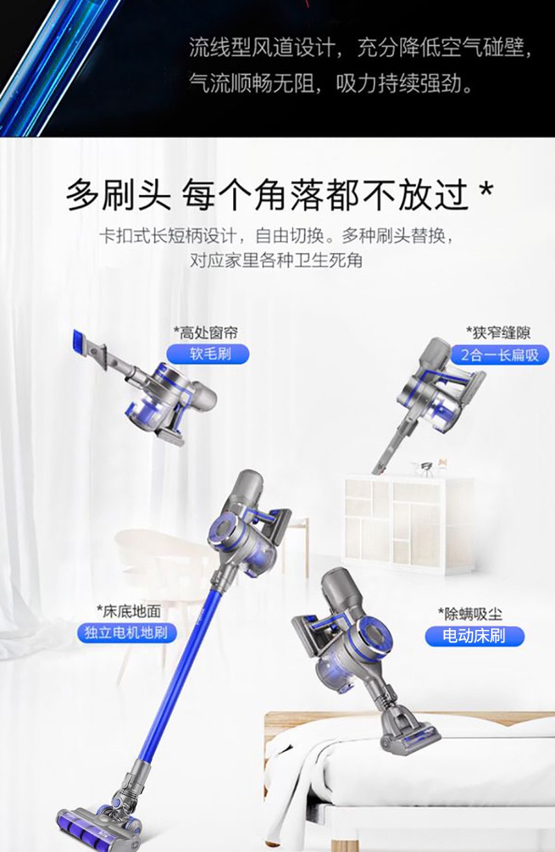 アメカの恵み浦P 8无线扫除机の家庭用强力パワは静音充电を持っています。小さな米粒の青い色を吸ってみます。